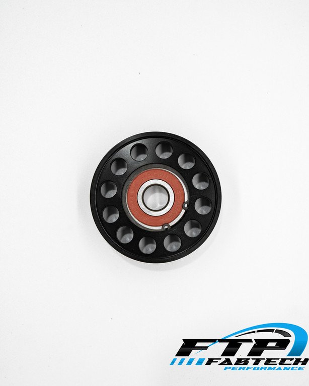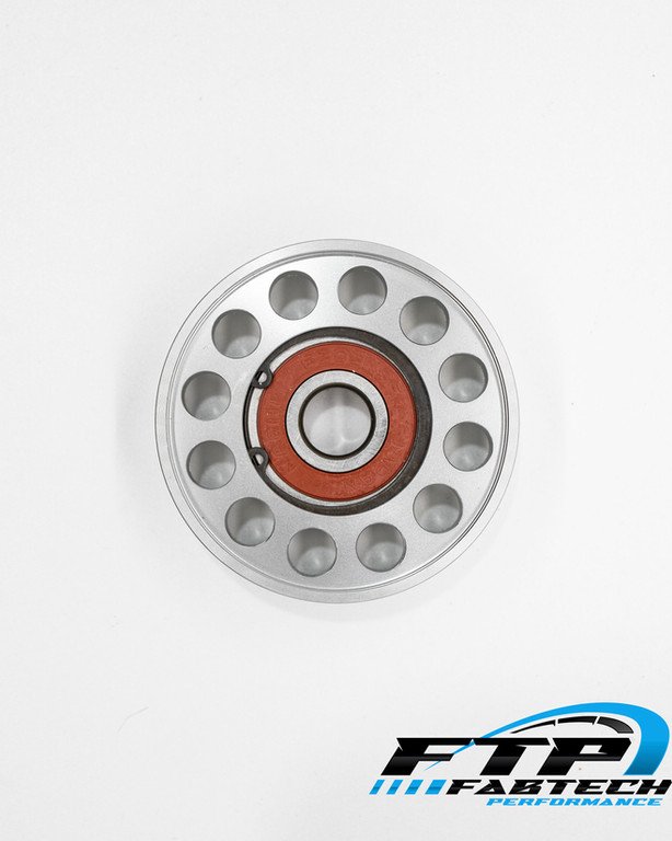 FTP Introduces our T6 Billet Supercharger Idler Pulley. This pulley replaces the factory failure prone Supercharger belt idler pulley. Our Idler Pulley is constructed from T6 6161 Billet Aerospace aluminum, on a 5 axis CNC. We then ensure the highest quality by removing tool marks and Hard Coat CLEAR anodize the entire pulley. We finish the pulleys with Genuine NACHI ZZ Rated Bearings. These Pulleys are made to outlast your AMG, and As always Backed by the company that produces them, Sells them and installs them right here at our South Florida Facility.