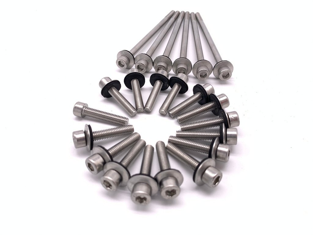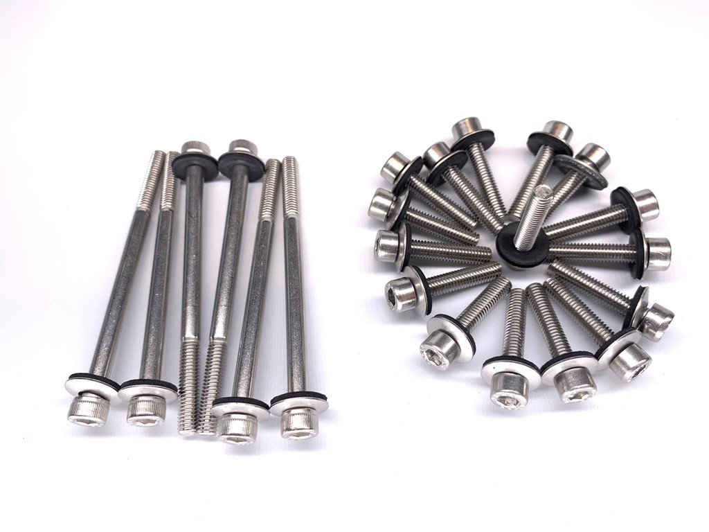 Fabtech-Performance introduces our 100% Made in the USA Stainless Steel Hardware kit for your M113K Valve Covers and Surge Tanks. Dress up the look of your engine compartment and remove the old Oxodised crusty hardware you currently have with our Stainelss steel Valve Cover hardware kit. This is a perfect add on when you are replacing your Valve Cover Gaskets and our utilizing our Powdercoated Valve Cover Service.
